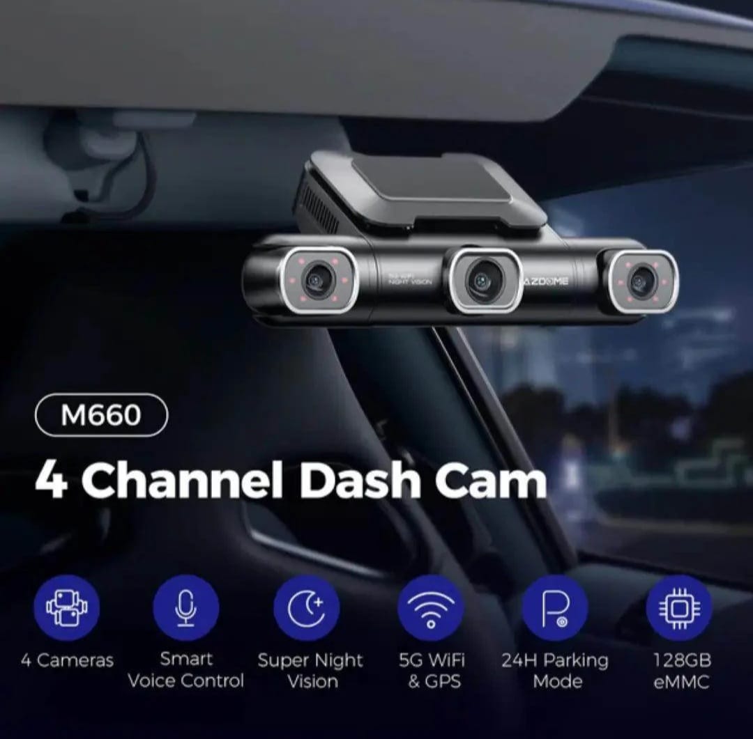 كاميرا المراقبة M660 جديرة بالملاحظة، كاميرا داش كام في اليوم، وتصوير أمام السوق، خلفية، يمين ويسار يغطي كل هيكل 🚘✨