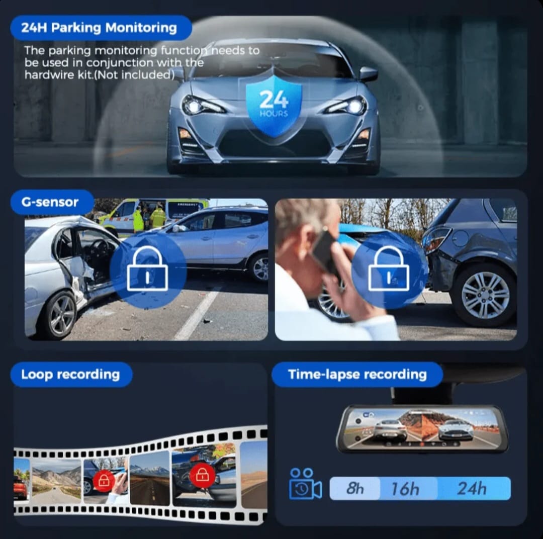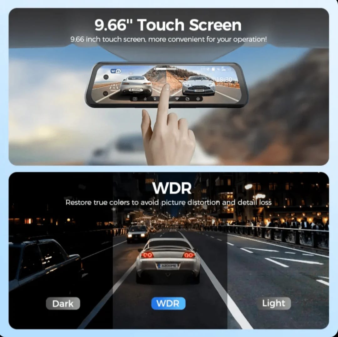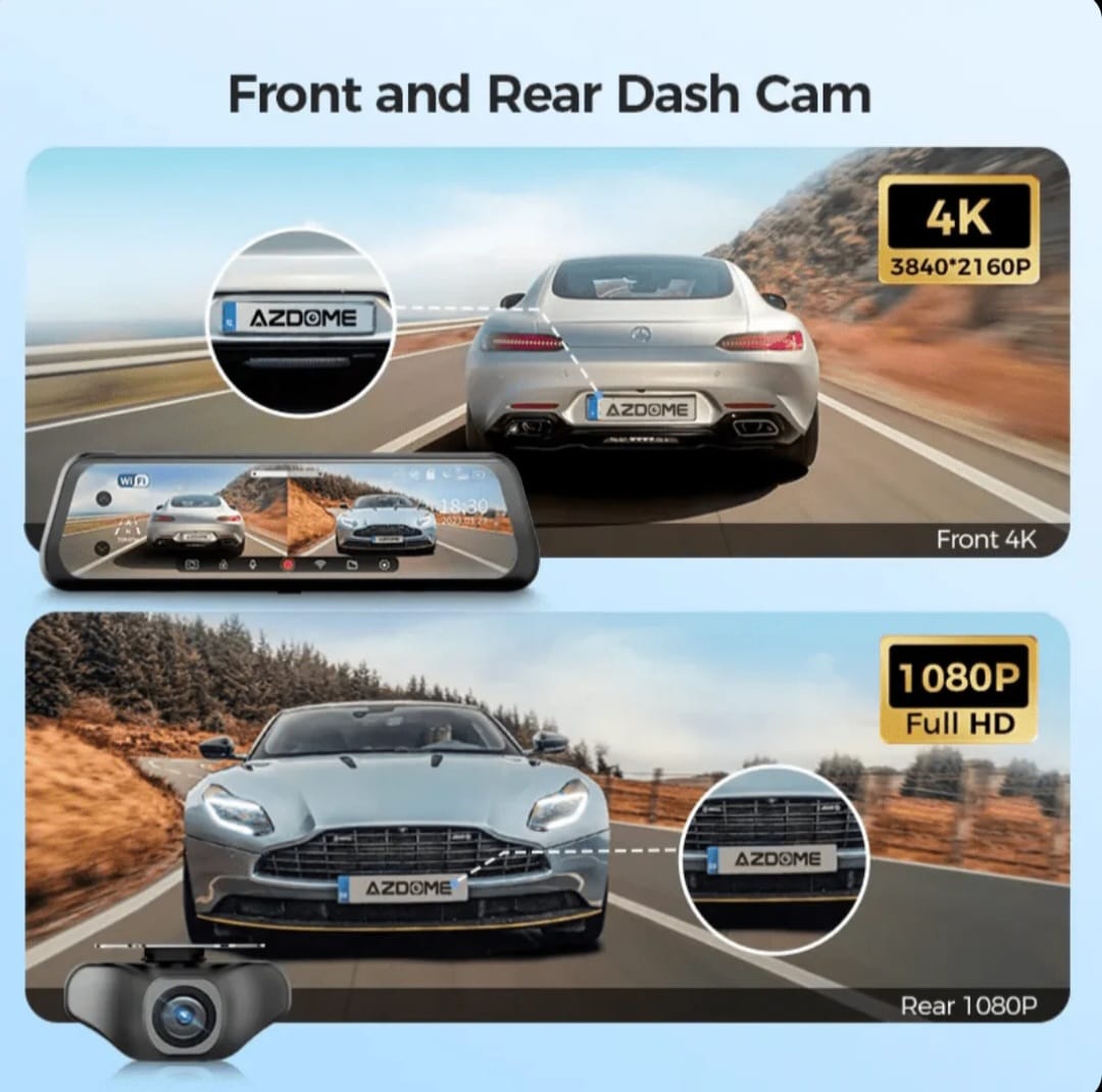 احمِ سيارتك مع كاميرا Azdome PG17 Mini بكاميرا أمامية 4K وخلفية 1080، زاوية واسعة 150°، وشاشة عرض كبيرة بحجم 9.66 إنش